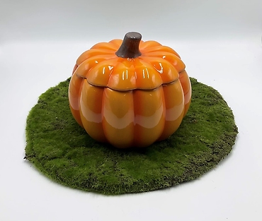 The pumpkin arrives with a lid so it will make a great candy dish for future use.